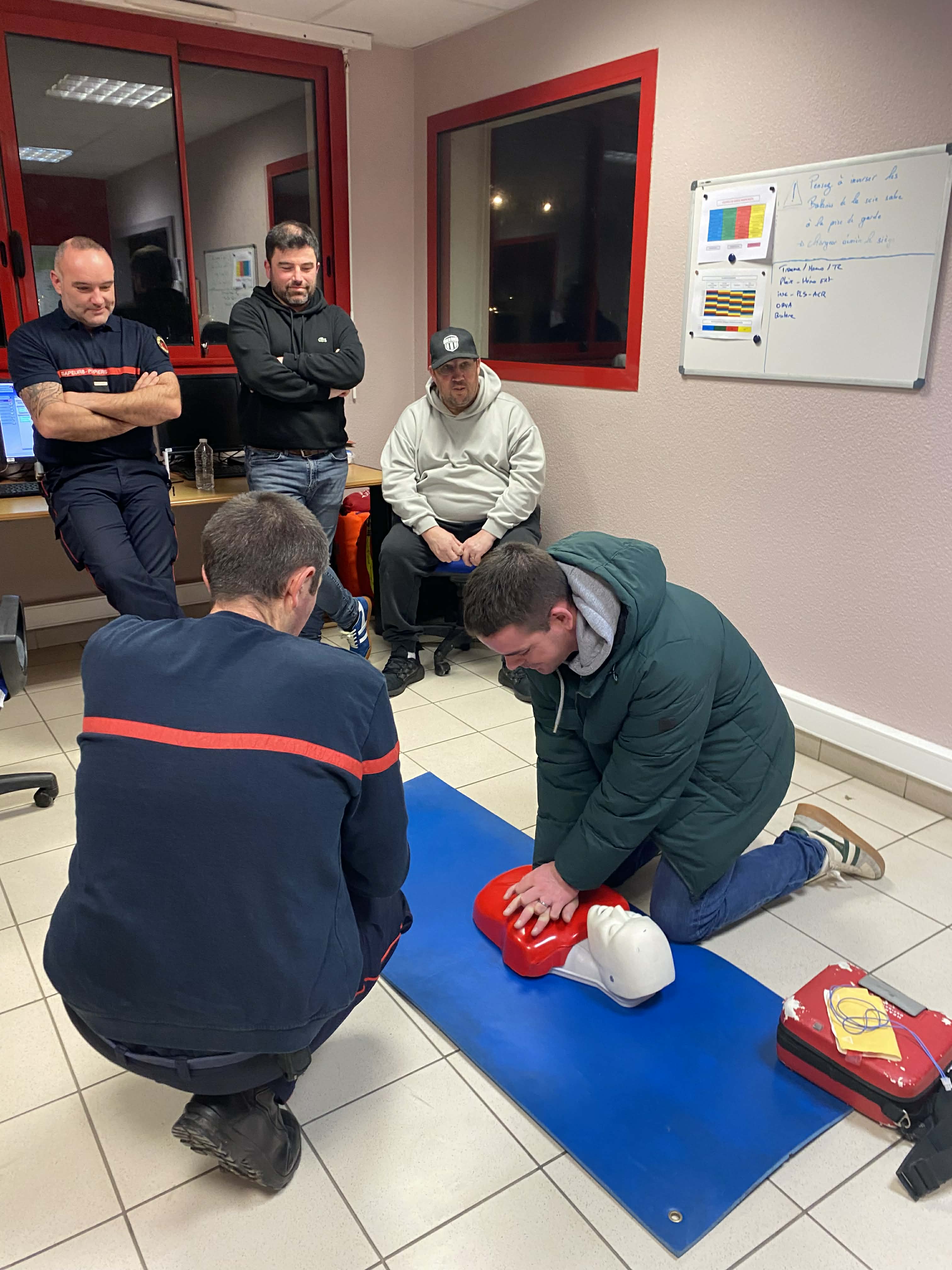 Courant février, les membres du Conseil d’Administration du Maen Roch F.C. se sont retrouvés à deux reprises à la caserne des sapeurs-pompiers pour participer à deux sessions de formation dédiées aux premiers gestes de secours.
